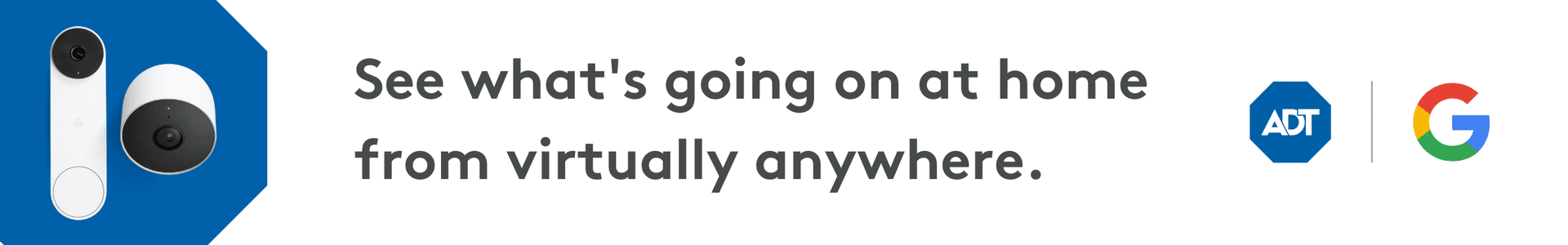 *Google Nest Doorbell (battery or wired) and Google Nest Cam (battery or 2nd gen wired) on us: Requires 36-month monitoring contract with ADT Complete starting at $49.99/mo. for professionally installed systems, (24-month monitoring contract in California, total fees from $1,199.76), and enrollment in ADT EasyPay, OR month-to- month monitoring contract with ADT Complete for DIY systems starting at $39.99 (one month minimum). Professionally installed system orders not available online. Offer includes one (1) Google Nest Doorbell (battery or wired) and one (1) Google Nest Cam (wired, 2nd gen) on us with minimum purchase price of $599 for professionally installed systems OR $269 for DIY systems after promotion is applied depending on geographic location. Offer not applicable to other Google Nest products or other generations of Google Nest products. Offer only available for ADT+ eligible system purchases. Other systems not eligible. Total max discount value of $599.98 for professionally installed systems OR $359.98 for DIY systems. Google Nest Doorbell (battery or wired) and Google Nest Cam (outdoor or indoor, battery) $179.99 MSRP each. Google Nest Cam Outdoor (wired, 2nd gen) $149.99 MSRP. Offer available for new ADT customers only. Limit one per customer, not combinable with other offers. Upon early termination of 36-month monitoring contract, ADT may charge 75% of the monthly service charges due for the balance of the initial contract term. Professional monitoring required for ADT to notify emergency contacts or services on your behalf. Service and installation charges vary depending on system configuration, equipment and services selected. Free shipping applies to standard shipping (approx. 5-7 business days) and not available in HI or AK. Cancel by calling (888) 392-2039 or by following the instructions in your order confirmation email. Familiar face detection is not to be used as definitive identification and is not available on Nest cameras used in Illinois. Some features, including mobile notifications, remote control, video streaming and video recording, require working internet and Wi-Fi, a Google Account and Google Home app linked to your ADT+ app. Minimum OS requirements are available at g.co/home/req. Google Nest products and services featured are designed to make life easier and to build a helpful home and were not designed specifically for life-sustaining or safety-critical use cases. These products and services are compatible with the ADT+ System, and depend upon working internet, Wi-Fi, and, in some cases, the service availability from ADT and/or Google. To learn more, please visit http://g.co/nest/TOS. Expires 4/15/2026.